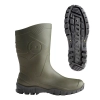 közepesen vízálló PVC csizma munkához, kertbe és szabadidőhöz|sötétzöld szár, fekete talp|korlátozottan olaj-, sav-, trágya-, fertőtlenítőszer- valamint különböző vegyszereknek ellenálló|Dunlop® profiltalppal|könnyen ápolható poliészter bélés