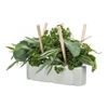 A tartó alkalmas fűvel, gyógynövényekkel, gallyakkal vagy szénával való töltéshez. Az extra rágcsálási élményért a fapálcák ágakra cserélhetők.