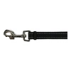 A kényelmes viseletről a neoprém bélés gondoskodik. Fényvisszaverő alkatrészekkel ellátott, gyorskioldó csattal. Normál pórázként is használható, kézi hurokkal. Heveder szalag. A derékszíjra rögzített kampókra ürülékgyűjtő zacskó is csatoltható. Méretek: öv: 60-130 cm / 25 mm póráz: 1,20 m / 15 mm, derék kerület: 60-130 cm, Hossz: 1,20 m, Szín: fekete