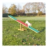 Együtt álljanak a libikóka elé; a kutyája pórázon és a második személy. Tartsa biztonságosan a kutyáját a pórázon az egyik kezének segítségével és a másik kezében tartson néhány finomságot: Kezdetben megjutalmazhatja kutyáját minden lépésnél. Vezesse fel a libikókára (a második személy mindig menjen végig vele a libikóka másik oldalán). Menjenek el mindhárman a libikóka közepéig, az úgynevezett billenőpontig és hagyja, hogy megálljon ott egy pillanatra. Most a kutyának kell megtalálnia és megtanulnia a libikóka fordulópontját, ezután ismét sétáljon le a libikókán. A második személynek segítenie kell egy kicsit ahhoz a libikóka csak lassan billenje, de meg ne ijessze a kutyát. Ha a végéhez ért, akkor fejezze be a gyakorlatot rövid szünettel az érintkező zónán.
