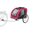 Kerékpár után kapcsolható kutya kocsi gyors rögzítéssel, erős és tartós - piros színű nylonból. Ajtóval az elején és hátulján is, két oldalsó zsebbel.