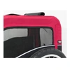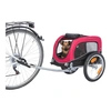 Kerékpár után kapcsolható kutya kocsi gyors rögzítéssel, erős és tartós - piros színű nylonból. Ajtóval az elején és hátulján is, két oldalsó zsebbel.