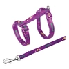 Ez a vidám mintákkal ellátott színes Trixie hám és póráz szett tökéletes választás, ha macskájával sétálni szeretne. Az élénk színek garantáltan vonzzani fogják a tekinteteket. A fokozatmentesen állítható hevederszalaggal a kívánt méretre állítható és a pattintható csatokkal könnyen felrögzítheti kedvencére. Különböző színekben kapható.
