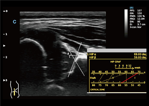 • A különböző szögek a csípődeformitás különböző szintjét jelzik, ami a grafikon segítségével könnyebben és egyértelműbben látható. (I, II, D, IIIa, IIIb).