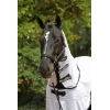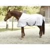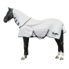 • Könnyű és erős takaró különösen kellemes anyagból legelőre és karámba • A fényes, légáteresztő anyag és a világos szín véd a túlmelegedéstől • Sűrű szövésű, puha poliészter, tökéletesen véd legyek, vérszívó és csípő rovaroktól • A takaró lecsúszását levehető, rugalmas lábzsinórok akadályozzák meg • Levehető nyakrész, tépőzárral rögzítéshez • Nagy farvédő • Tépőzárakkal a nyak- és a mellrészen• Mellrész alábélelt • 30 °C-on géppel mosható