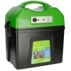 univerzális, rendkívül nagyteljesítményű 12 voltos akkumulátoros készülék mobil használathoz 12 voltos üzemben mélykisütés elleni védelemmel|a kézi vezérlővel (1–10) fokozatmentesen állítható az áramütés erőssége, így hatékonyan szabályozható és az adott kerítésviszonyokhoz igazítható az áramfelvétel|két külön világító dióda a kerítésfeszültség és az akkumulátorfeszültség ellenőrzéséhez|választhatóan üzemeltethető 9 voltos alkáli szárazelemről is|230 V-os tápegységgel működtethető (371012 - nem tartozék)|napelemes lehetőség – közvetlen csatlakoztatás a készülékre