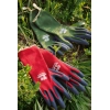 varratmentes, finomkötött kesztyű (13 gauge) rugalmas, tartós nejlonból|minőségi, rugalmas latexhab bevonat ("MicroFinish", a felületi struktúra tapadókorongokhoz hasonlít)|meghosszabbított kötött lábszár, így véd a csalán vagy szennyeződés ellen jóval a csukló felett is|egyedülálló TOWA-illeszkedés tökéletes ülést garantál|növények és gyümölcsök védelme puha, de fogékony bevonatolással|mosva, így latex-allergia elleni védelemmel|kerti kesztyűk új generációja